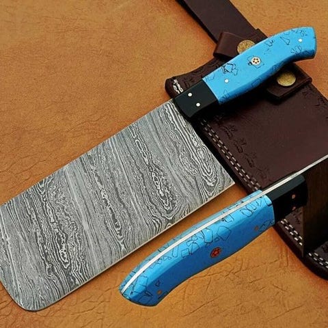 Køkkenkniv - Cleaver - Stål, Træ, Læder - Storbritannien