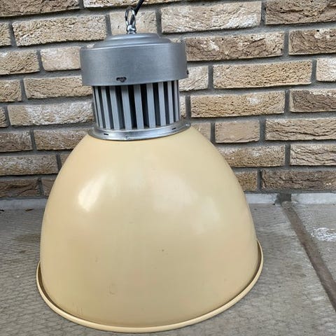 Den metalfremstillede industristil-fabrikslampe er: