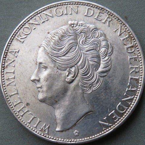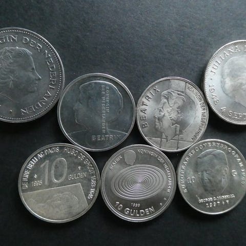 Trediv sølv hollandske mønter med royalt tema fra 1847 til 2004, samlet vægt 410 g, lot på 30 stykker, ikke certificeret. Klik på den blå "gå til varen" knap, for at købe eller byde på denne vare. Den samlede pris vil blive vist inden du afgiver dit bud.
