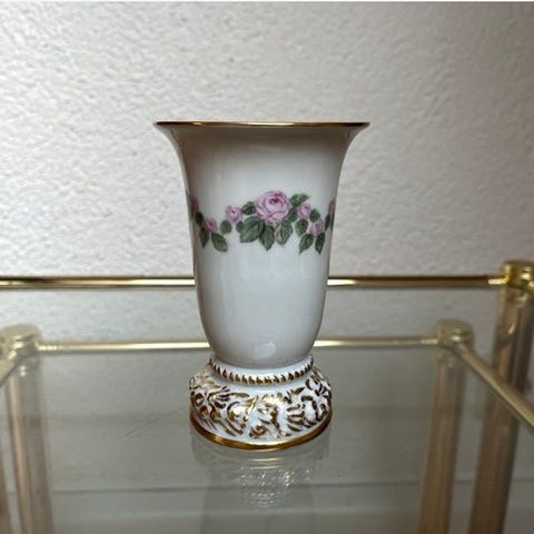 Rosenthal porcelænsvasen fra Kunst-Abteilung, Selb-Bavaria, håndmalet med stort blomsterdesign og rosenmotiver, signeret af kunstneren og mærket Rosenthal Selb-Bavaria – Kunst-Abteilung, håndpåført gylden kant og fod, højde 42 cm og diameter 20 cm, dateret til 1950–1960 og i fremragende stand. Klik på den blå "gå til varen" knap, for at købe eller byde på denne vare. Den samlede pris vil blive vist inden du afgiver dit bud.
