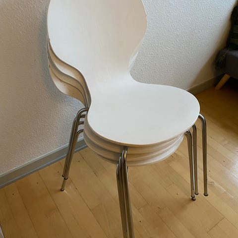 2 hvide og 1 grå. 1 stol 125 kr, 3 stole 300 kr