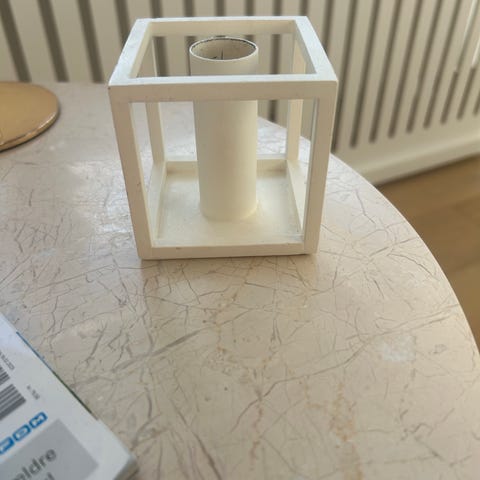 Lysestage, samlet pris for 2 stk, Audo Kubus 1 stager By Lassen, 2 stk i sølv / krom, Kubus lysestager, tegnet af Mogens Lassen i 1962. De måler 7 x 7 x 7 cm. 2 stk sølvfarvede, som er udgåede og kun lavet i begrænset antal. Passer almindelige kronelys. Fra ikke-ryger hjem.
