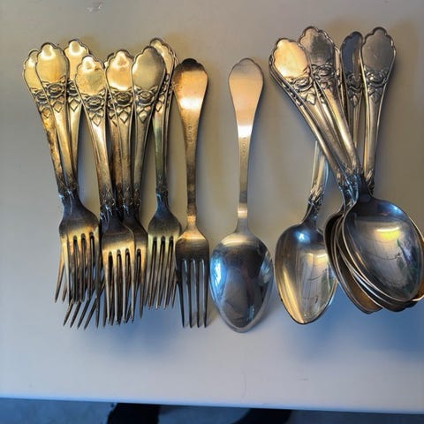 12 STK PLETSØLV,DIAMETER 28 CM,SKAL PUDSES,