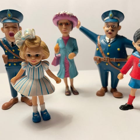 Pippi Langstrømpe figurer i forskellige størrelser og udformninger. Sættet indeholder karakterer fra Pippi Langstrømpe universet, herunder Pippi, hendes venner og dyr. Fremstillet i plastmateriale, velegnet til leg og samling.