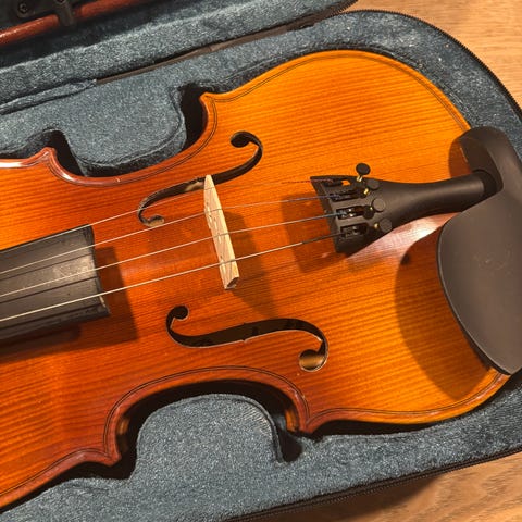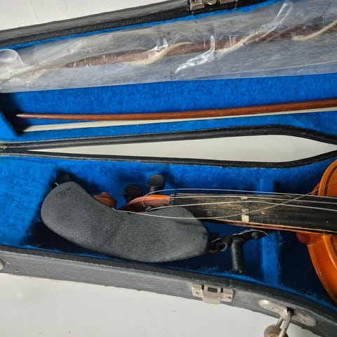 Der indgår stryger samt særlig voks til at vokse strygeren.
