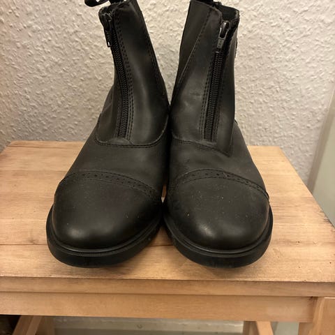 Horze JR ridestøvler i sort læder, størrelse 37. Støvlerne har lynlås og snørefunktion foran samt foret indvendigt for komfort og varme. Designet til juniorryttere. Aldrig brugt , for smal til min datters brede læg .