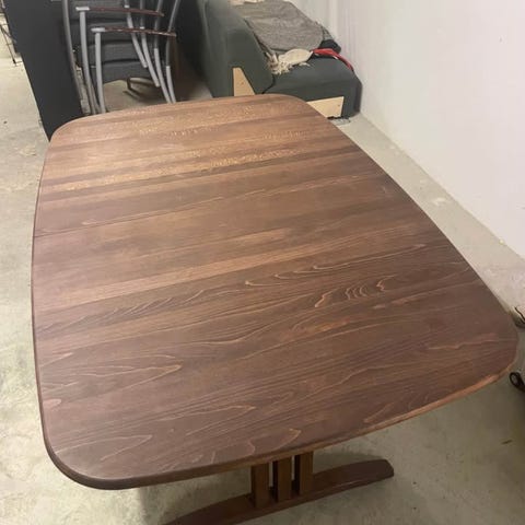 Spisebord med 2 tillægsplader og 8 stole