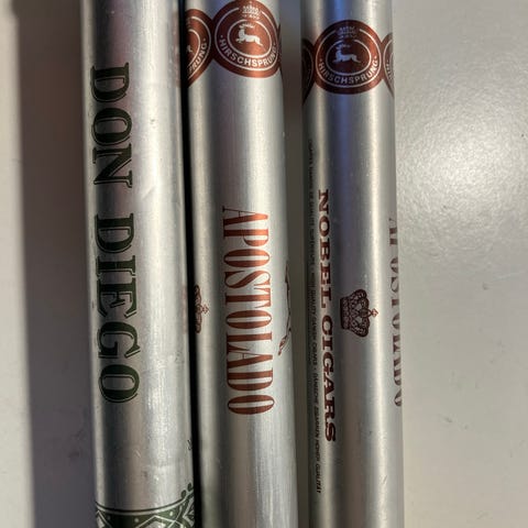 Flot æske cigarer, indeholder 9 stk. Æsken fremstår som ny, måler 9,2 x 11,5 x 1,3 cm