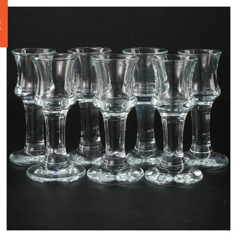 Hilmegaard skibsglas. Dette er et sæt bestående af fem glas, hver med en diameter på 6 cm og en længde på 11 cm. Glassenes design er enkelt og elegant. De er ideelle til servering af vand, juice eller cocktails ved middagsbordet eller til specielle lejligheder.