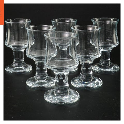 Holmegaard skibsglas portvin. To glasstager med en diameter på 5,5 cm og en længde på 10 cm. Stagerne er lavet af klart glas med en solid base.