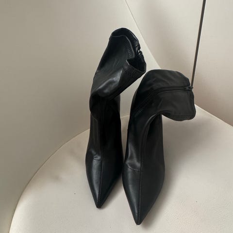 Et par sorte støvler med en glat finish. Støvlerne har en elastisk vest omkring anklene fjernere behovet for snørebånd. Ydersålen har et mønster der giver et godt greb under gang. Fremstillet af Dublin, blev støvlerne mærket med små etiketter på toppen. Størrelsen på støvlerne er 40.