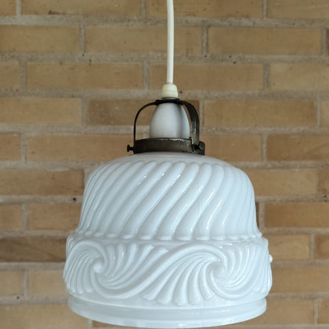 Kuglependel i opalglas med kromtop og aflastning. Dansk produceret