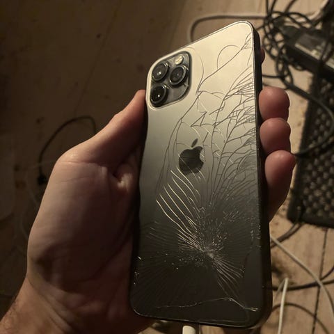 Bagskærm er flækket men kameraet og alt andet virker stadig.