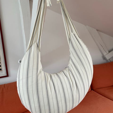 The pillow cover is made from organic cotton and the filling is kapok - a breathable, temperature-regulating and hypoallergenic natural fiber. I've only used the nursing pillow a couple of times because my baby didn't like it (little guy, big personality), so it's as good as new.
