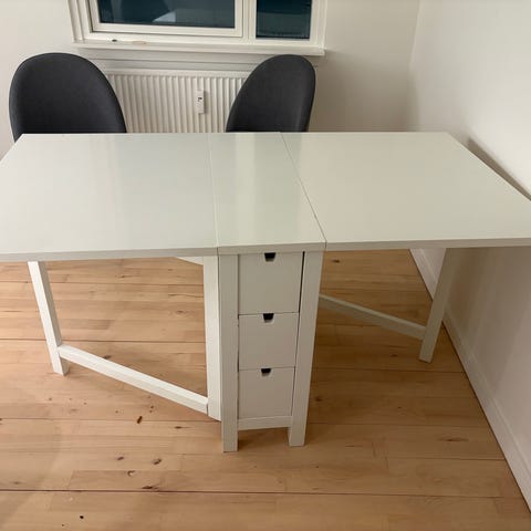 IKEA NORDEN klapbord, spisebord. Rigtig smart med udtræk til begge sider. Perfekt til en lille lejlighed, siden det kan blive kun 32cm smalt.