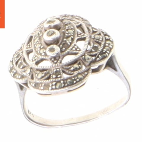 En sølvring med en detaljeret blad-design gravering omkring båndet. Ringen er lavet af sølv og har en indre diameter på 48 mm. Designet giver et rustikt og naturligt udtryk.