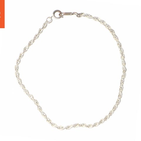 Armbånd lavet af sølvmateriale, prydet med blomsterformede motiver. Det har en længde på 17,5 cm. Armbåndet har en enkel og moderne stil med små dekorative led, der forbinder de blomsterformede elementer.