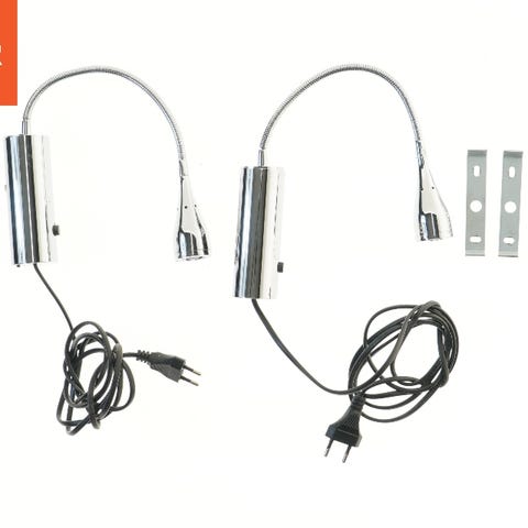LED væglampe med fleksibel arm, der gør det nemt at justere lysretningen. Lampen har en rund base og en lang, buet arm, der ender i en LED-lyskilde. Lampen kommer med et strømforsyningskabel og adapter, ideel til læselys eller arbejdsstationer.