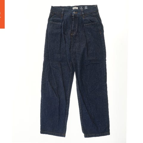 Disse jeans er lavet af blå denim og har et afslappet, baggy pasform. Forsiden af bukserne er prydet med flere grafiske prints i sort og hvid, herunder tekst som 'GOOD DAY', 'GIRL', 'FUN', og billeder som et tegnet bjørnehoved, en smilende ansigt, lyn og et hjerte. Bukserne har almindelig lynlåslukning, bæltestropper og to forlommer. Bagsiden af jeansene fremstår enkel med to påsatte lommer.