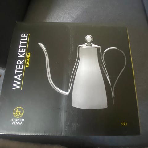 En elektrisk vandkedel med en kapacitet på op til 2 liter. Den er fremstillet i rustfrit stål med en sort plastik håndtag. Kedlen har måleindikatorer på siden og et aftageligt låg. Den står på en rund base der har en integreret ledning med en EU-stik. Mærket Sandström er indgraveret på bunden af kedlen.