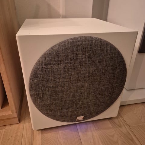 Subwoofer i super god stand. Købt i sept 2023. Sælger da det bliver for meget af det gode i min lille lejlighed. Den kan spille langt højere end mit behov.
