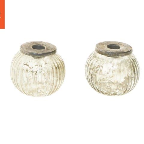 Et par elegant designede glaslysestager med en subtil guldkant. Lysestagerne har en klar, glat overflade, der reflekterer lys skånsomt. De er ideelle til små stearinlys eller dekorationer og har dimensionerne 6,5 x 6 cm. Perfekte til brug i forskellige indretningsstile.