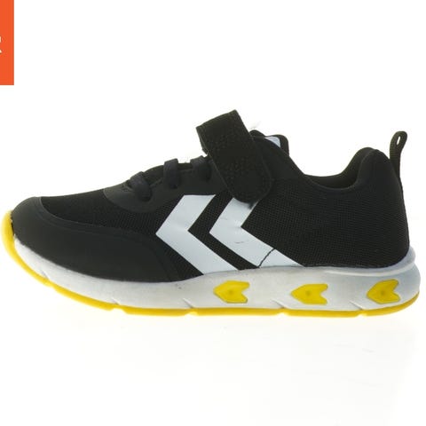 Disse børnesko er i størrelse 26 og har en iøjnefaldende design med sorte, røde og gule detaljer. Skoene har en robust sål med et unikt mønster for ekstra greb og komfort. De er udstyret med velcrolukninger for nemmere påføring og tilpasning. Indersiden er foret med rødt stof for en behagelig pasform. Der er små slidskader på sålen og nogle tegn på brug på de ydre kanter. Skoene er perfekte til aktive børn, der ønsker en stilfuld og praktisk sko til hverdagsbrug. Tags: sko, børn, velcro, sport