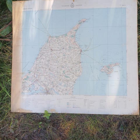 Vintage bykort over Flensborg. Fra 1863 og optegnet med farver. H. 38cm L. 54,5 cm Brugt med brugsspor. Fra dødsbo