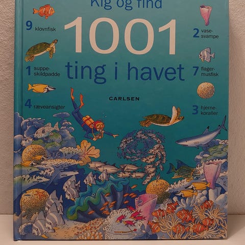 1001 ting i havet, kig og find bog i rigtig fin stand. Katie Daynes. Forlaget Carlsen. 32 sider. Hardback i storformat: 23,5x27,5 cm. Ann. nr. K174