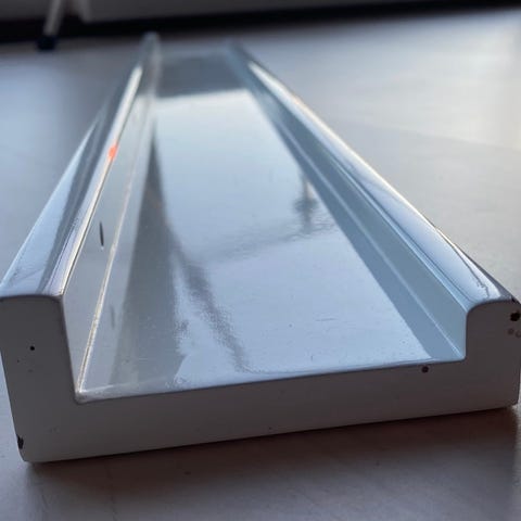 Sort gallerihylde i en længde af 50 cm, perfekt til at holde billeder eller små dekorative genstande. Hylden er i sort farve og har inkluderet monteringshuller, hvilket gør den nem at hænge op. Plastikken er stadig på hylden, hvilket indikerer at den er ny eller let brugt.i god stand