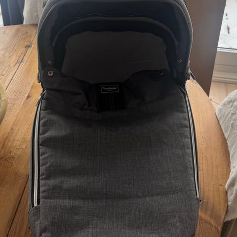 Thule barnevognskasse i sort farve. Designet til at passe til Thule løbevogn og give en komfortabel liggeplads til barnet. Indeholder aftagelige stropper til fastgørelse. Materialet er holdbart og egnet til udendørs brug.