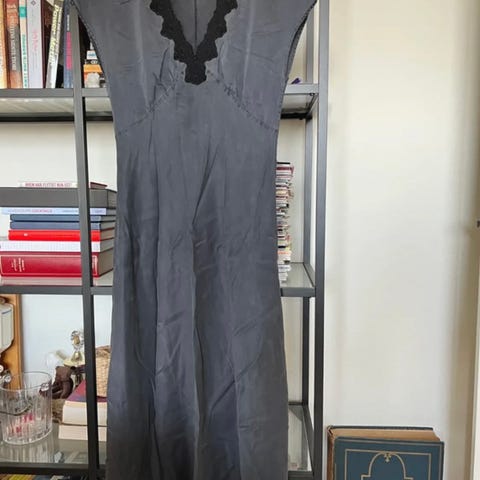 Lækker, sort velour kjole i 20 procent silke og 80 procent viskose med for. Kjolen har et mønstret bærestykke og lange mønstrede ærmer. Vidden er ca. 100 cm målt lige under ærmegabet. Der er en knap bagpå og lynlås i siden. Længden er ca. 90 cm. Den er fra Silkwear og kun brugt en enkelt gang.