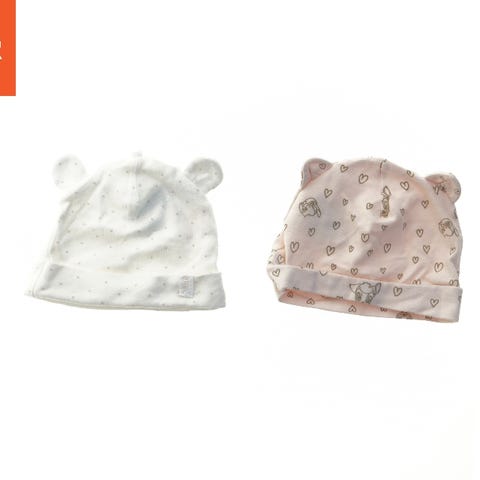 Hvid babyhue og vanter fra H&M (str. 56)