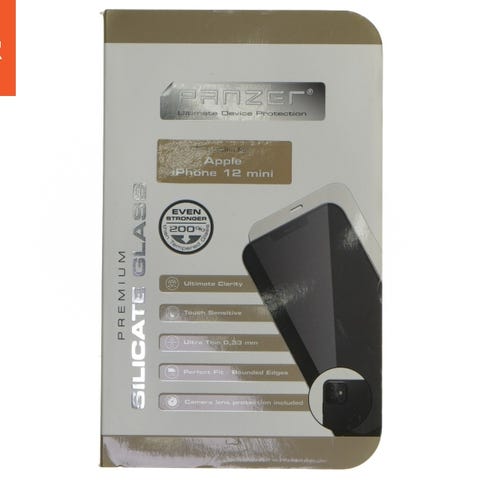 Panzer silicate glass skærmbeskyttelse specielt designet til iPhone 12 mini. Beskytter skærmen mod ridser og stød med 200% stærkere hærdet glas. Denne pakke inkluderer en skærmbeskytter samt et kameralinsebeskyttelse. Instruktioner for nem og boblefri påføring findes på bagsiden af emballagen.