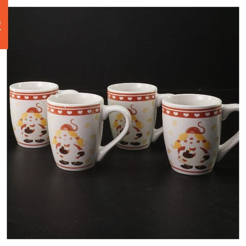 Disse krus er lavet af fin porcelænsstentøj og prydet med et julemotiv, der inkluderer kristtornblade og røde bær. Krusene bærer mærket 'Royal Grafton Fine Bone China England' på bunden, hvilket indikerer høj kvalitet. Den primære farve er hvid med dekorative elementer i grøn og rød. Krusene har en diameter på 6 cm. De kan bruges til varme drikke og vil tilføje et festligt præg til enhver opdækning.