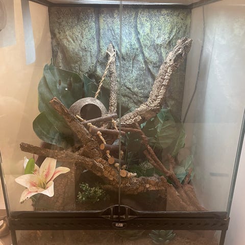 Dine små dyr og krybdyr kan føle sig trygge og veltilpasse i dette must-have terrarium. Kvalitetsmateriale: Terrariet er lavet af konstrueret træ. Materialet er kendt for varmebestandighed og er fugtbestandigt. Det ægte glas misfarves ikke eller bliver gult med tiden, så reptilburet kan bruges i lang tid.God beskyttelse: Terrariet har ingen skarpe kanter indvendigt, så du behøver ikke bekymre dig om, at dine dejlige kæledyr og krybdyr kommer til skade.Godt indsyn: Takket være glasset i dette terrarium kan du tydeligt observere dyrene i buret.Bedre luftcirkulation: Terrariets stålnet skaber god luftstrøm og giver frisk luft i buret. Materiale: Konstrueret træ, glas, stålProduktmål: 120 x 50 x 50 cm (L x B x H)Montering/samling påkrævet: Ja
