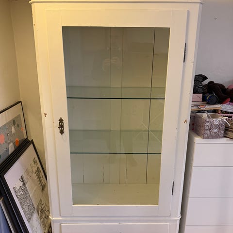 Malet i en lys blågrøn farve udvendig og på hylderne.