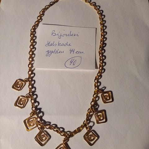 Gyldent halskæde med blomstret vedhæng (str. 22 cm)