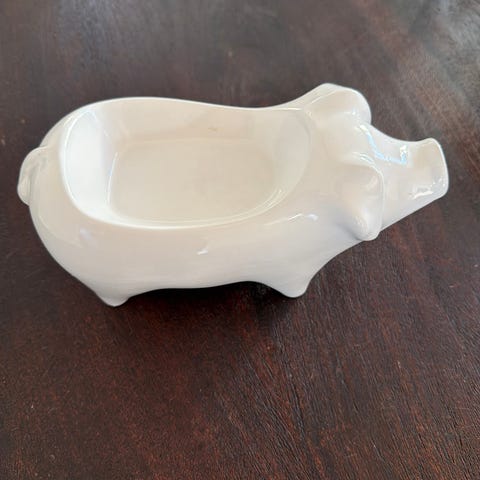 Karsegris i rå ler. Dansk klassiker formgivet i 70'erne. Den er i OK stand, dog har den fået en på trynen (lille afslag, se billede). Måler ca. 22x10 cm.
