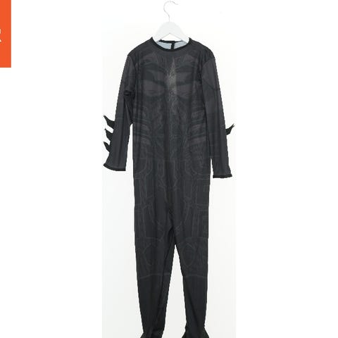 Grå heldragt med en hætte udformet som et dyrehoved med ansigt og ører. Dragten har et hvidt parti på forsiden og en lille hale bagpå. Den har manchetter ved hænder og fødder og lukkes med en lynlås foran.