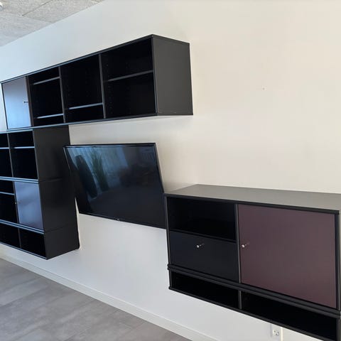 Der er små ridser lidt omkring, men ikke noget man umiddelbart ser, medmindre man virkelig lægger mærke til det - dog kan der på siden af ét af modulerne ses tydelige ridser (se sidste billede) som evt. kan gemmes ved at have et modul på siden, eller siden kan hænges op ad en væg.