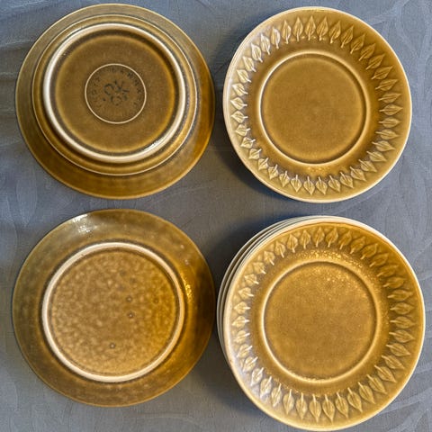 Bing og Grøndahl Kagetallerken fra Relief Serien (Kronjyden). Måler 16,5 cm. Keramisk Stentøj. Jeg har 10 stk i alt. 5 stk har Bing og Grøndahl mrk og 4 intet mrk og en med Kronjyde mrk. Ingen skår.