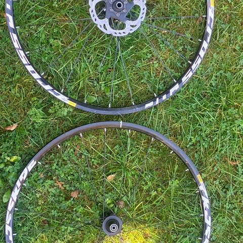 Godt hjulsæt. Ventilhullet er udboret til at tage autoventil. Sælgers med maxxis beaver dæk og slanger med lappevæske.