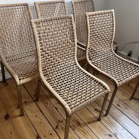 Sælger 4 stole og et spisebord. Meget smukt og passer også godt til mindre rum.
