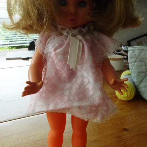 Fin lyshåret Pusledukke, står fint, har fine øjne