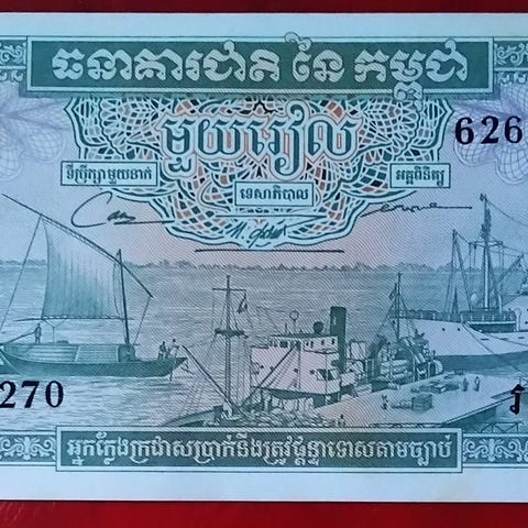 CAMBODIA CAMBODJA UNC. 0.5 RIEL / 5 HAK 1979 Tonle Sap Lake p27 Porto 25kr. Op til 100gram!