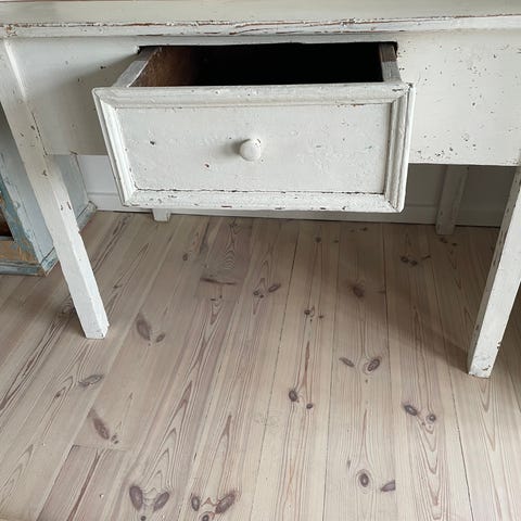 RUSTIK SPISE BORD ELLER SKRIVEBORD Træbord med skuffe og grønmalede ben
