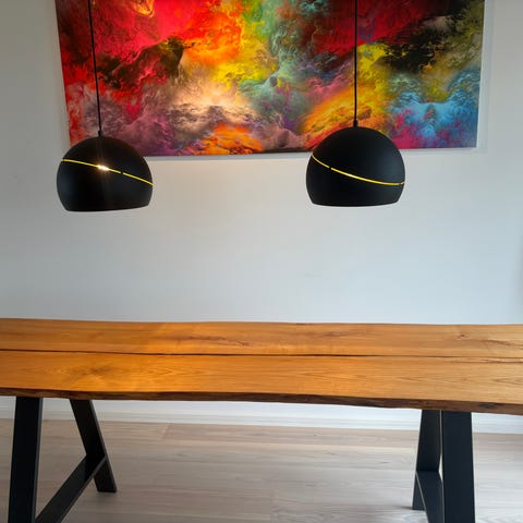 Bordet er i røget eg og benene kan flyttes både længere ind og ud. Bordet er løbende blevet olieret, kan efter aftale også slibes let og olieres inden salg.