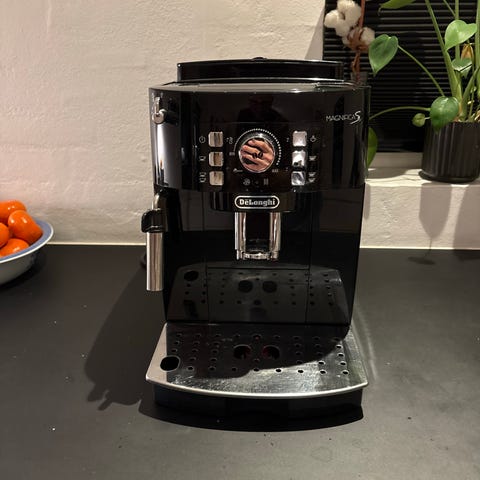 Kaffemaskinen virker fint, dog drypper der nogle gange vand efter kaffen er lavet. Måske det kan fikses- vi har ikke prøvet. Prisen sat derefter.