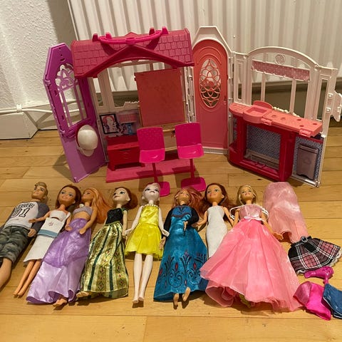 Barbiehus, barbiebiler, barbiedukker og tilbehør